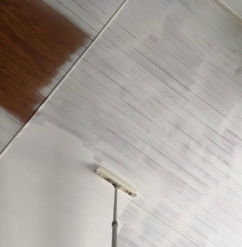 The customer wanted the timber ceilings and walls painted. The process was undercoating, and two top coats of Taubmans Pure Performance low VOC paint. The paint has an in built microband mould inhibitor as well.