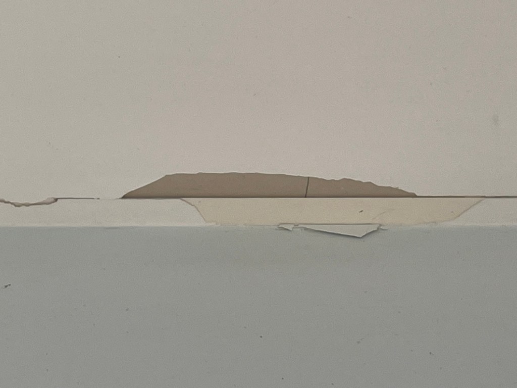 This property had a massive problem with the square cut tape from a poor plastering job coming loose. Extensive repair work and repaint was required.
